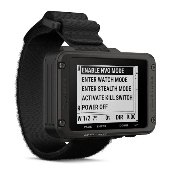 Użyj trybu ukrycia, aby zatrzymać zapisywanie i udostępnianie danych GPS oraz wyłączyć łączność bezprzewodową. W przypadku problemów z zabezpieczeniami wystarczy kliknąć wyłącznik bezpieczeństwa, aby usunąć całą pamięć urządzenia. Użyj trybu Jumpmaster, aby obliczyć punkty otwarcia na dużych wysokościach zgodnie z wytycznymi wojskowymi.