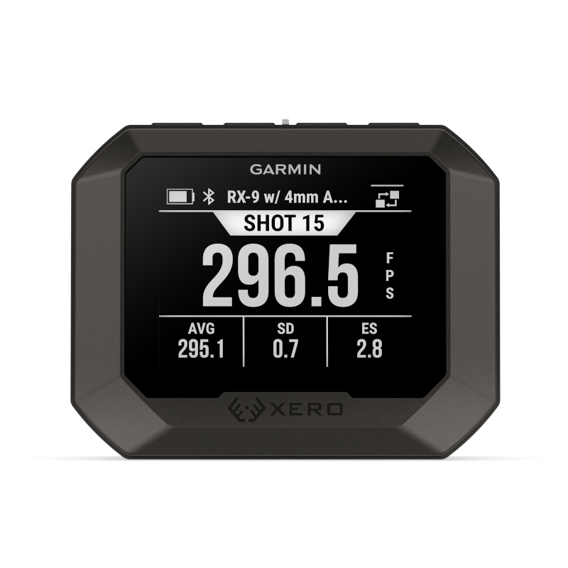 - Współpracuje ze smartwatchami firmy Garmin - połącz z kompatybilnym smartwatchem Garmin, aby uzyskać dostęp do elementów sterujących sesją, wyświetlać dane na żywo i importować prędkość wylotową do wbudowanego kalkulatora balistycznego Applied Ballistics®